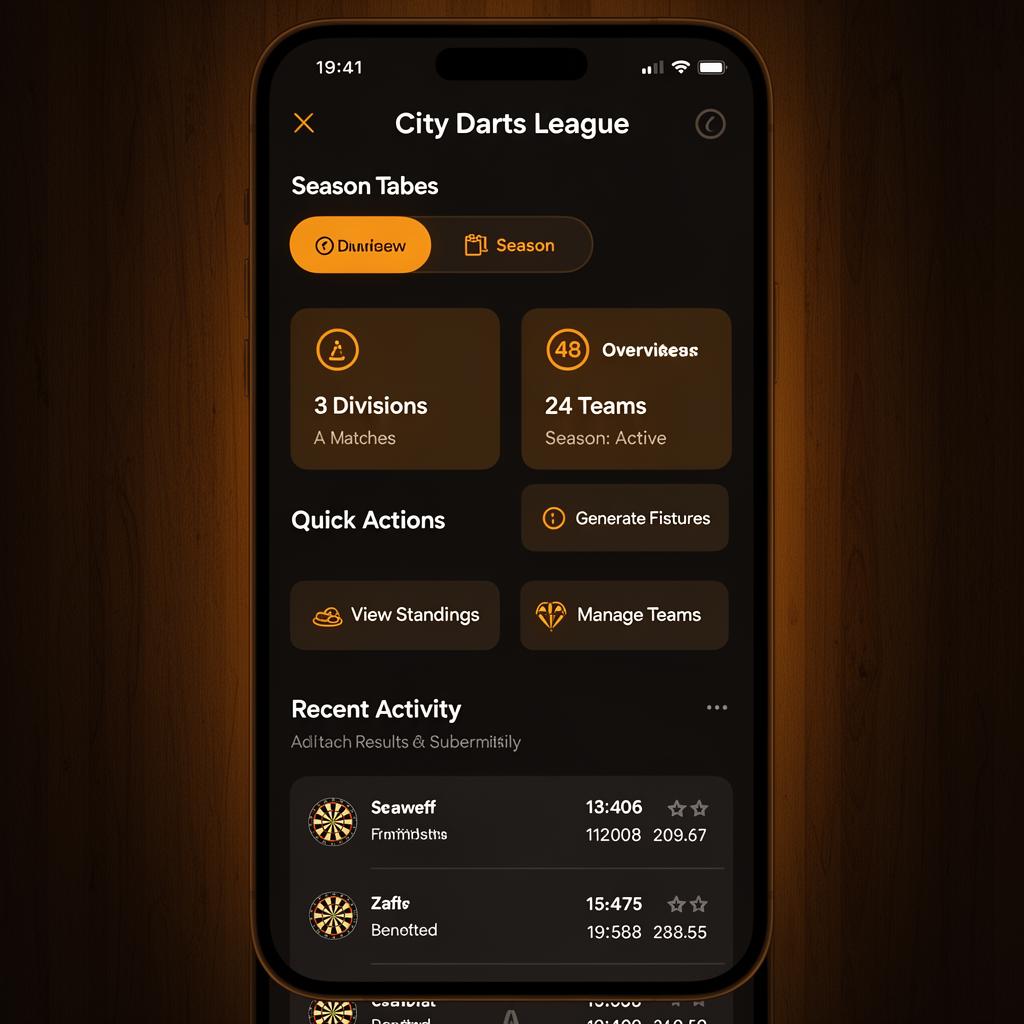 Seasons, fixtures, standings and match verification — everything you need to run a professional darts competition in one platform.