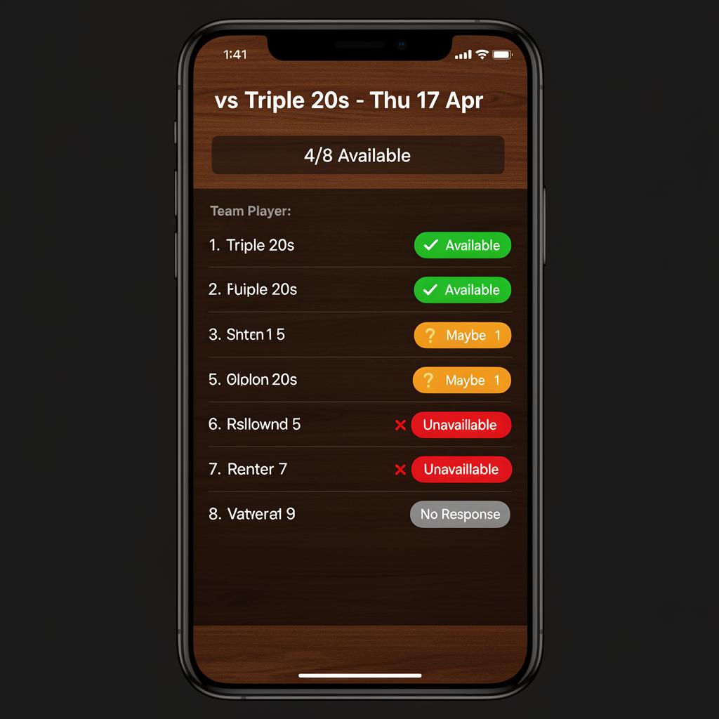 No more chasing responses. Players mark themselves available, maybe or unavailable — you see the full picture instantly.